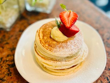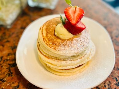 Indulge in our freshly made buttermilk pancakes topped with fruit, butter, and a sprinkle of powdered sugar! Gluten Free Option Available